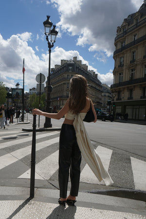cashmere long tail bra top in cream
