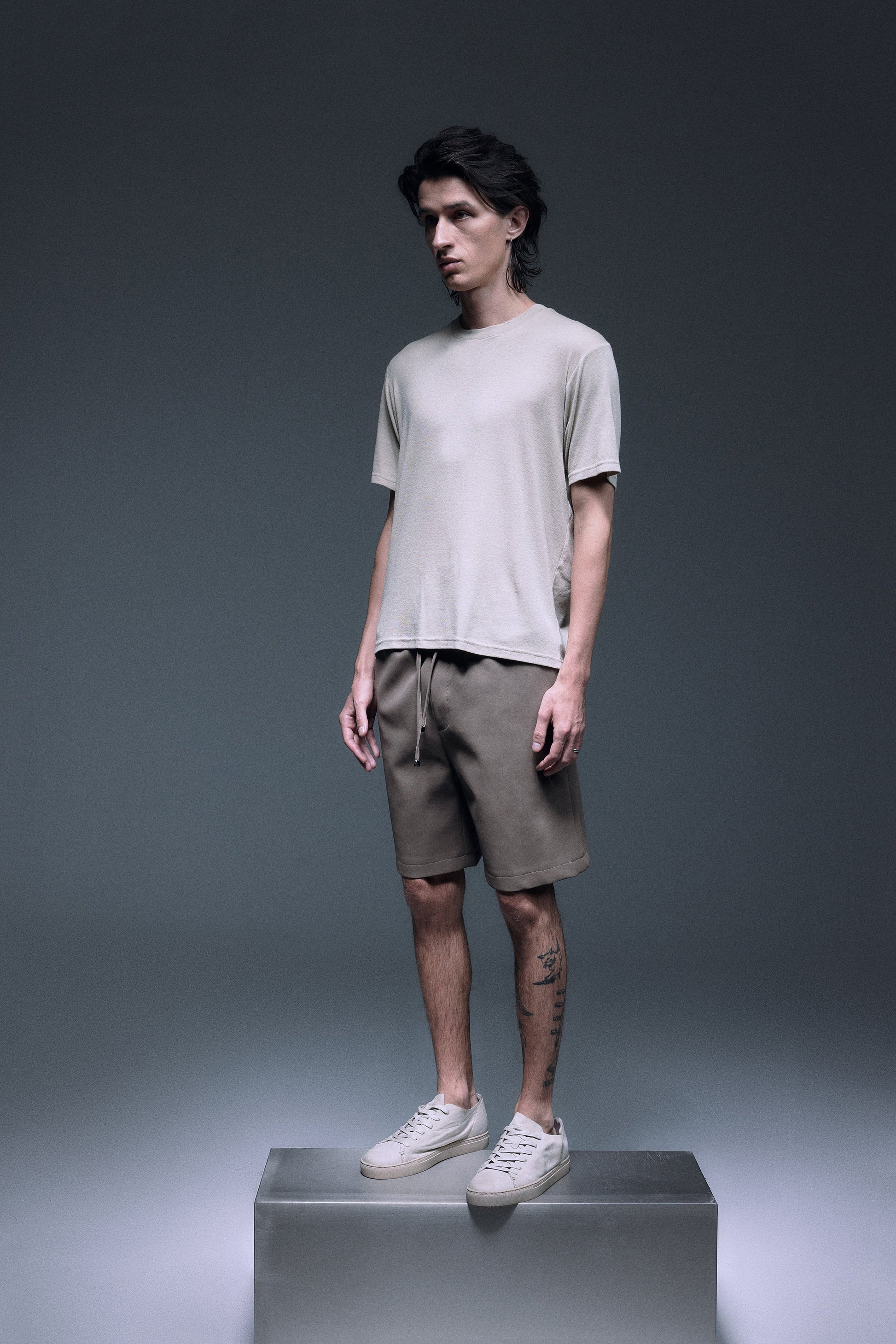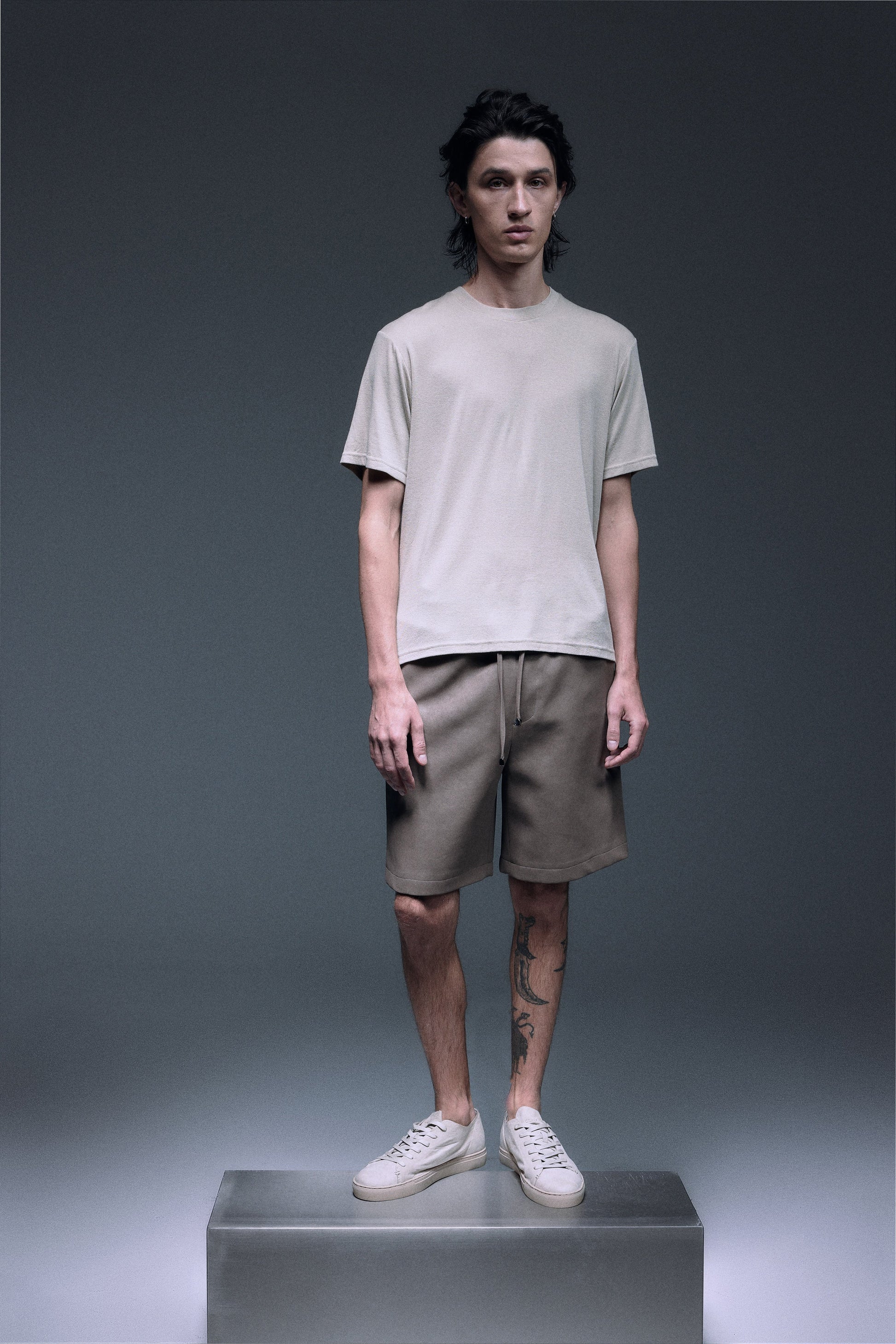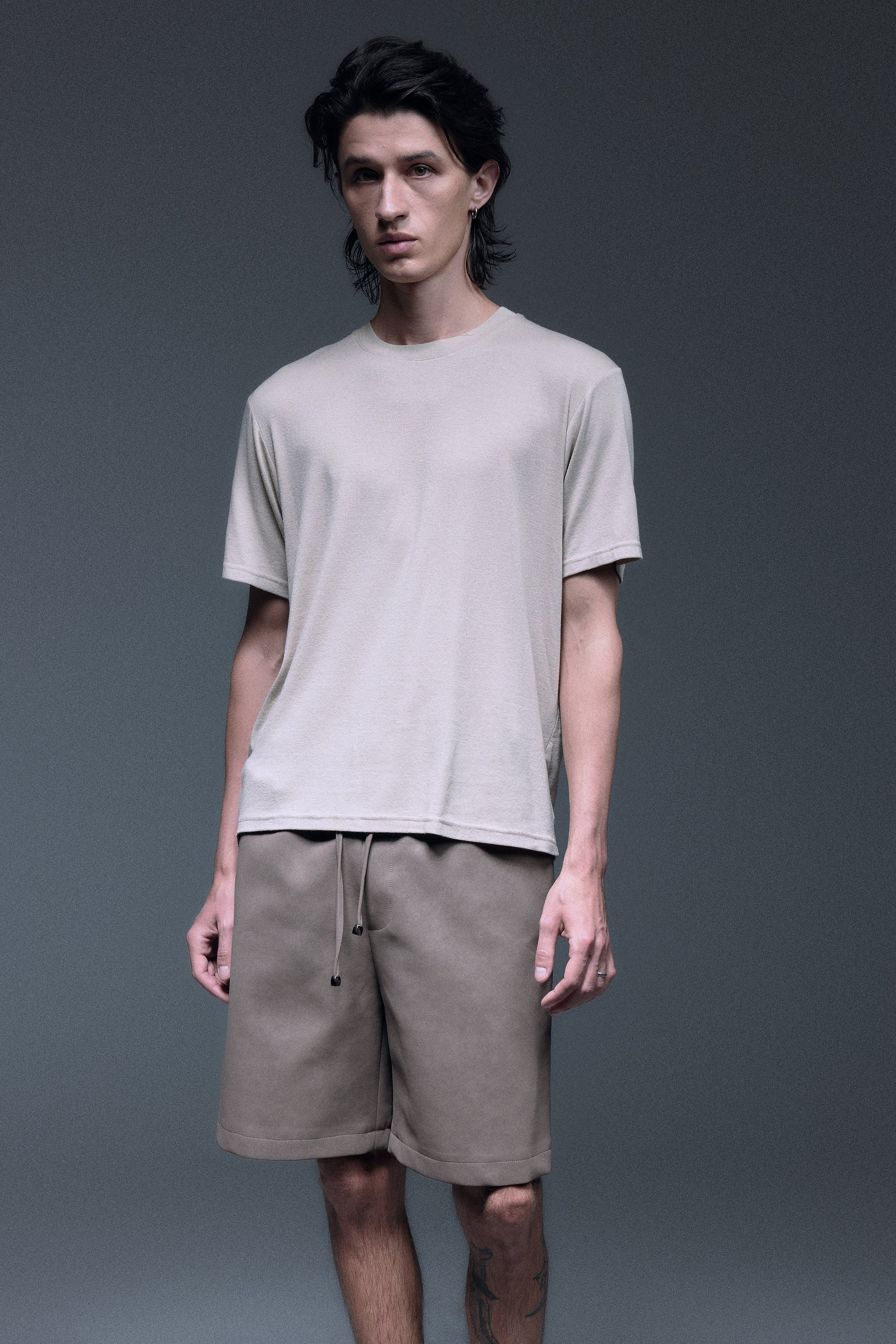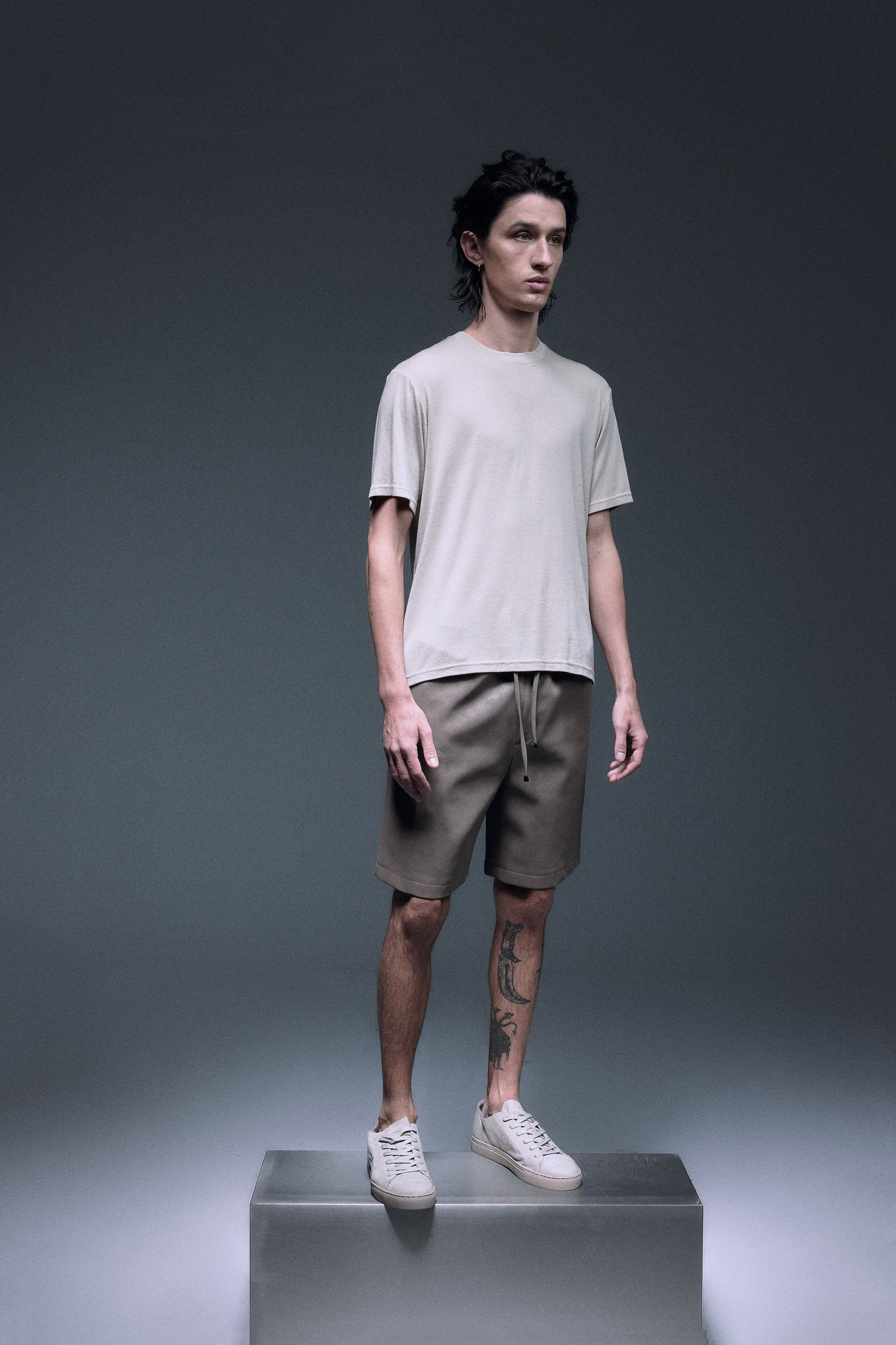The unique vegan leather shorts in matte texture terracotta, designed with a slightly dropped inseam to provide ultimate comfort, finished with same vegan leather drawcords and front slash pockets to provide functionality.