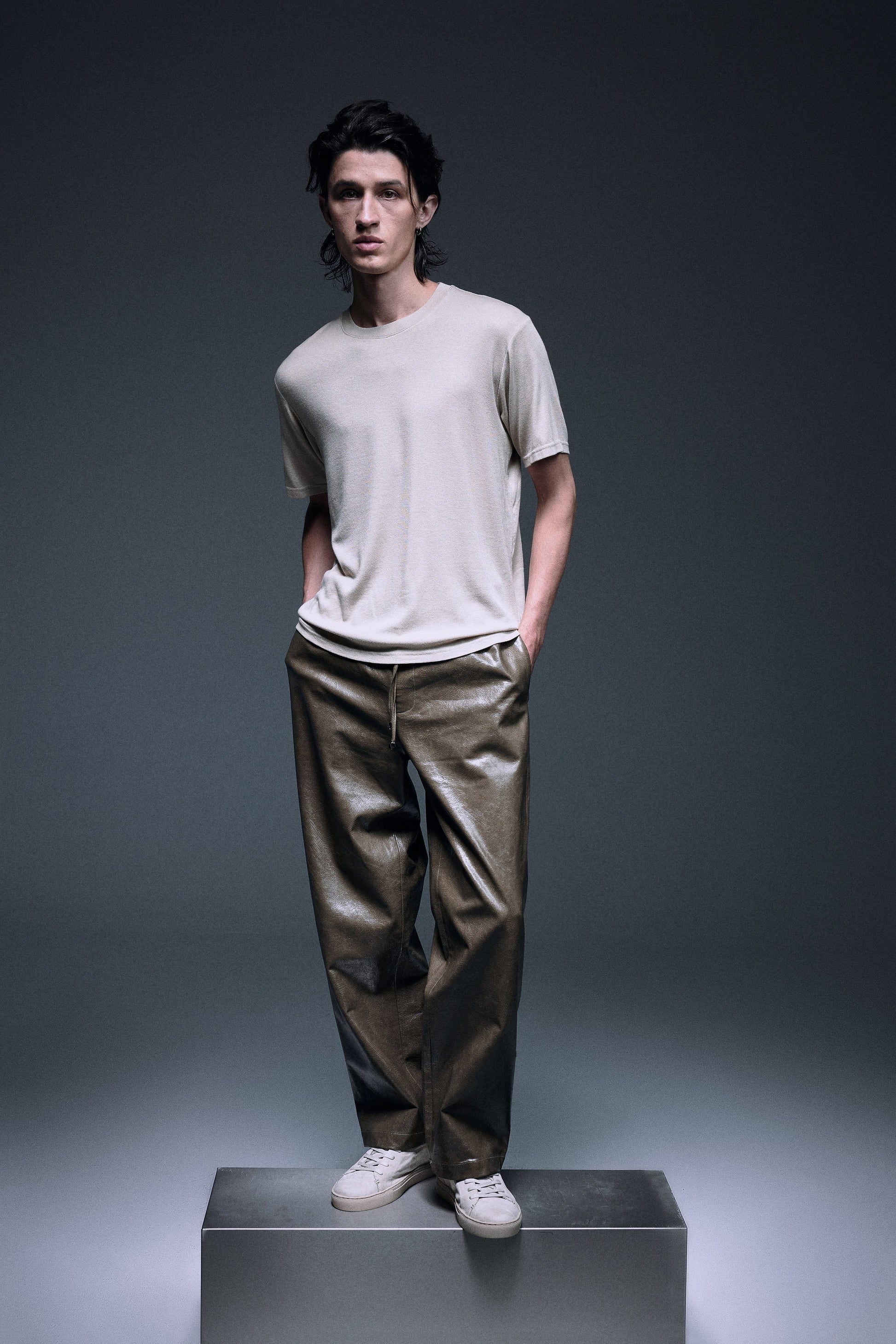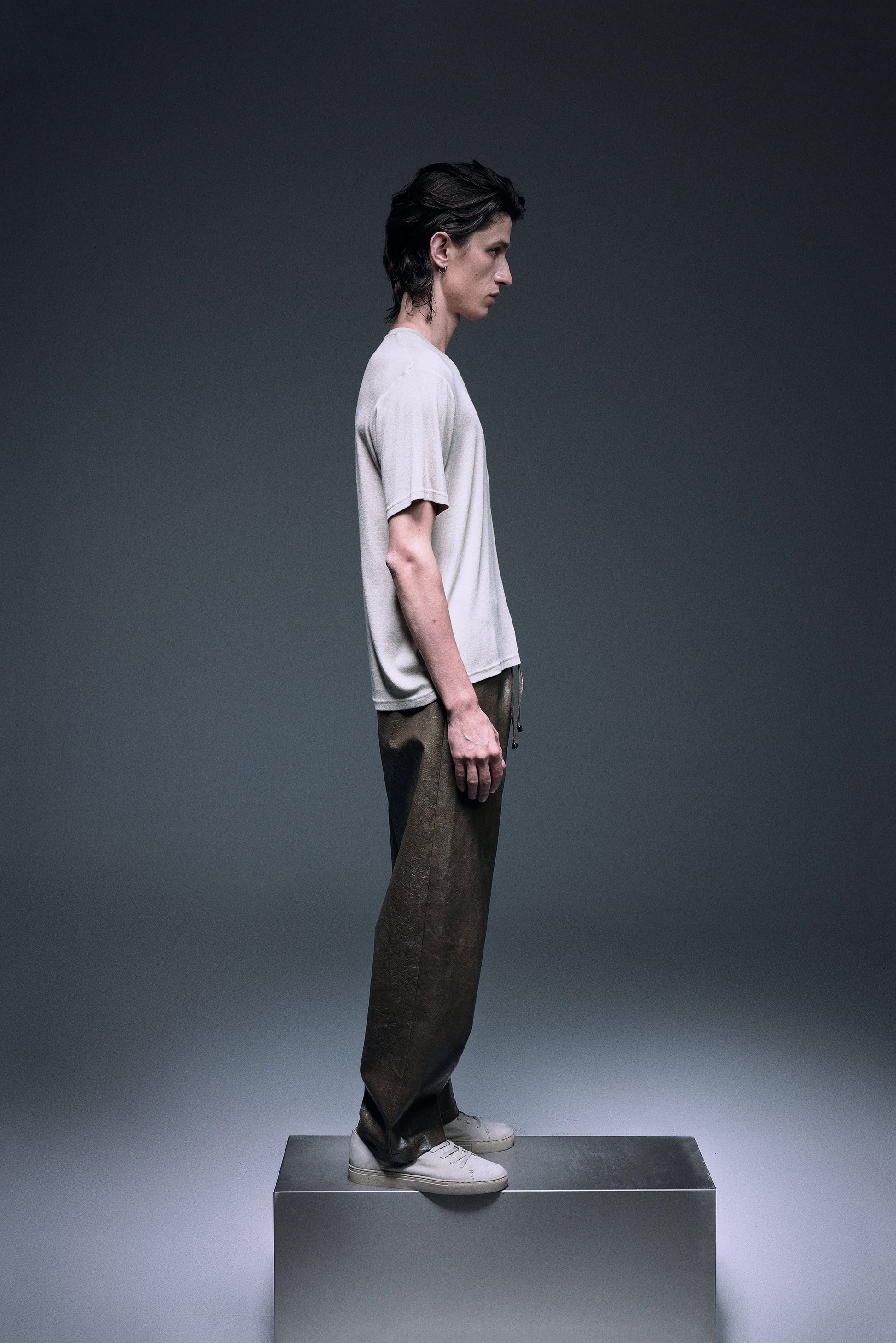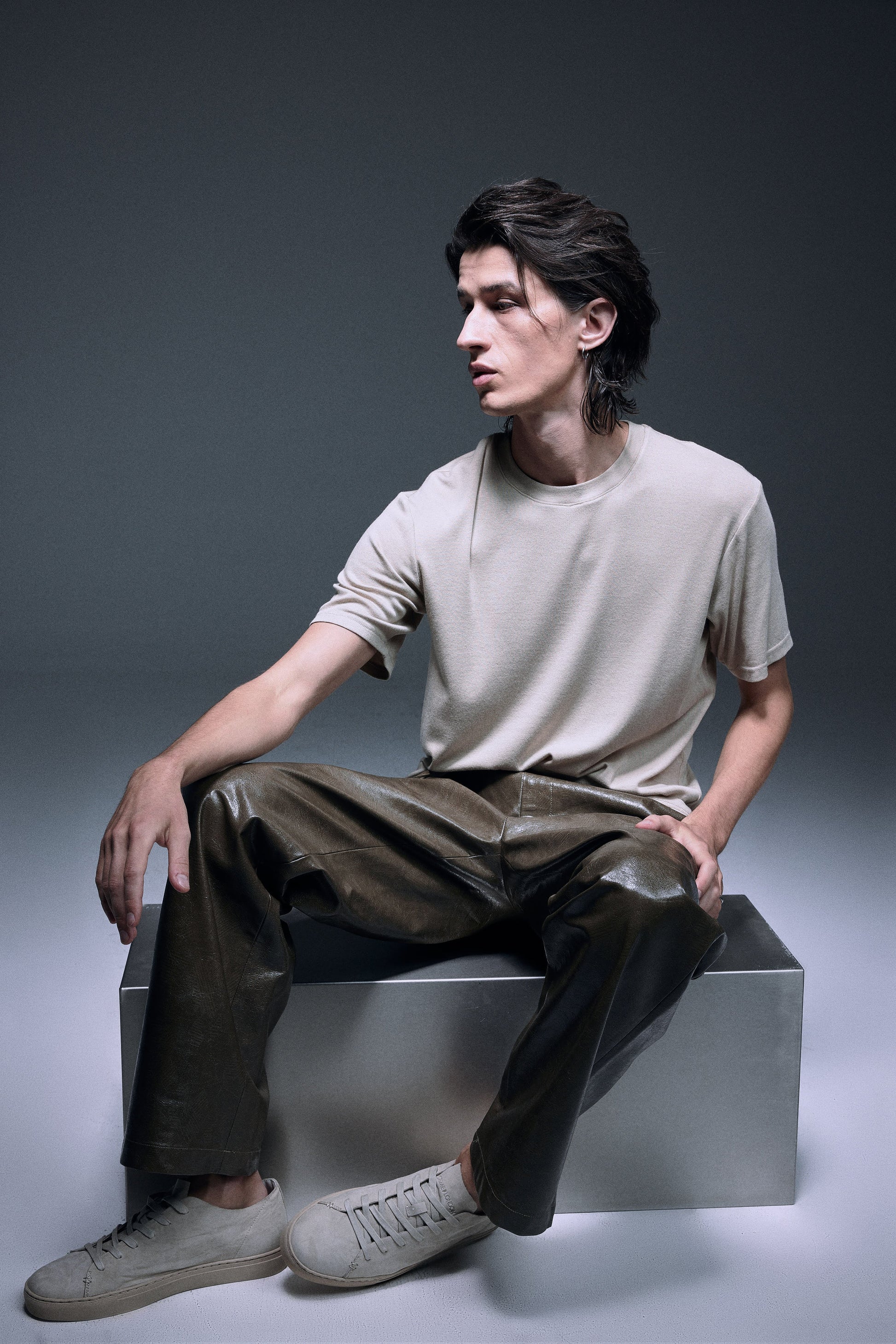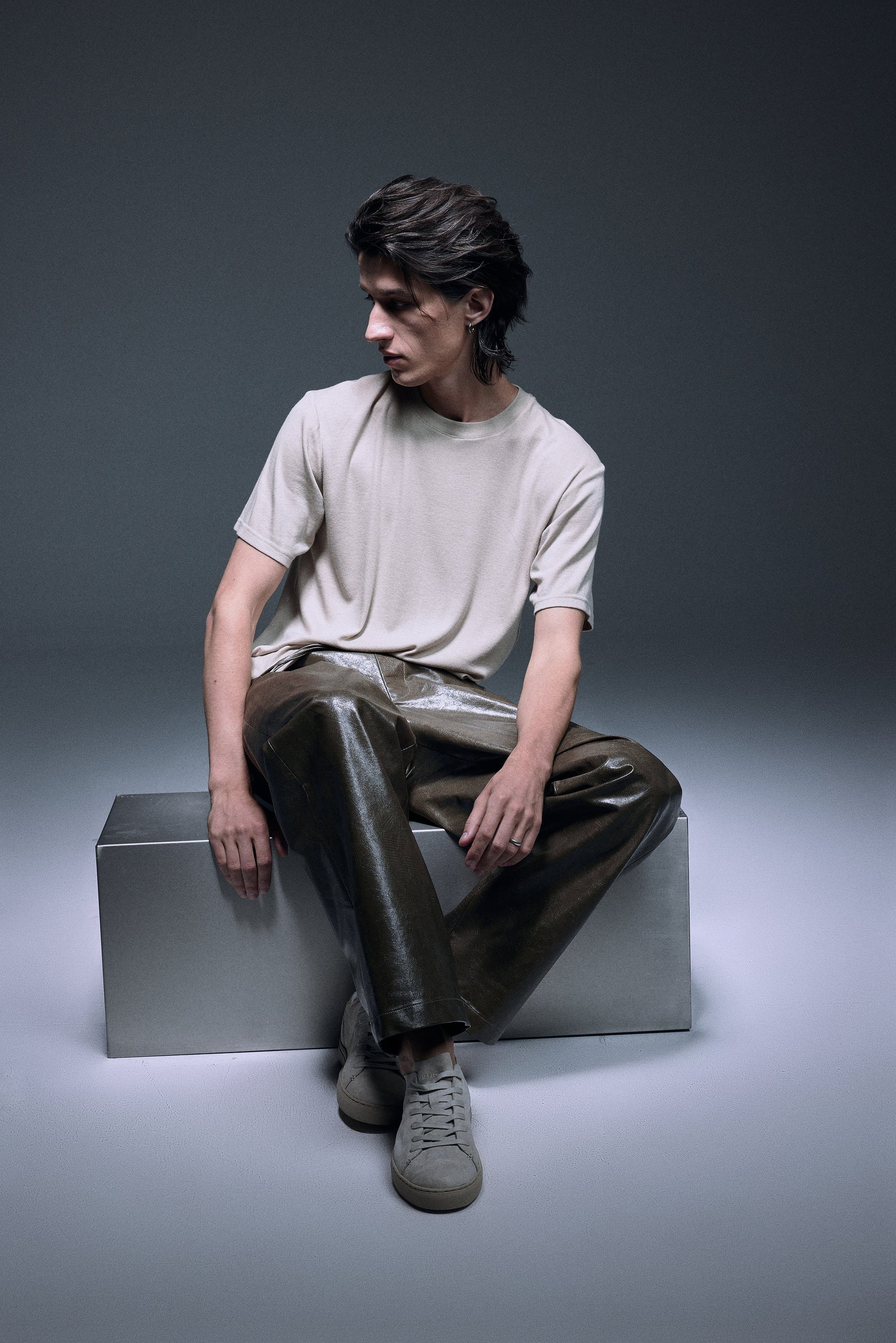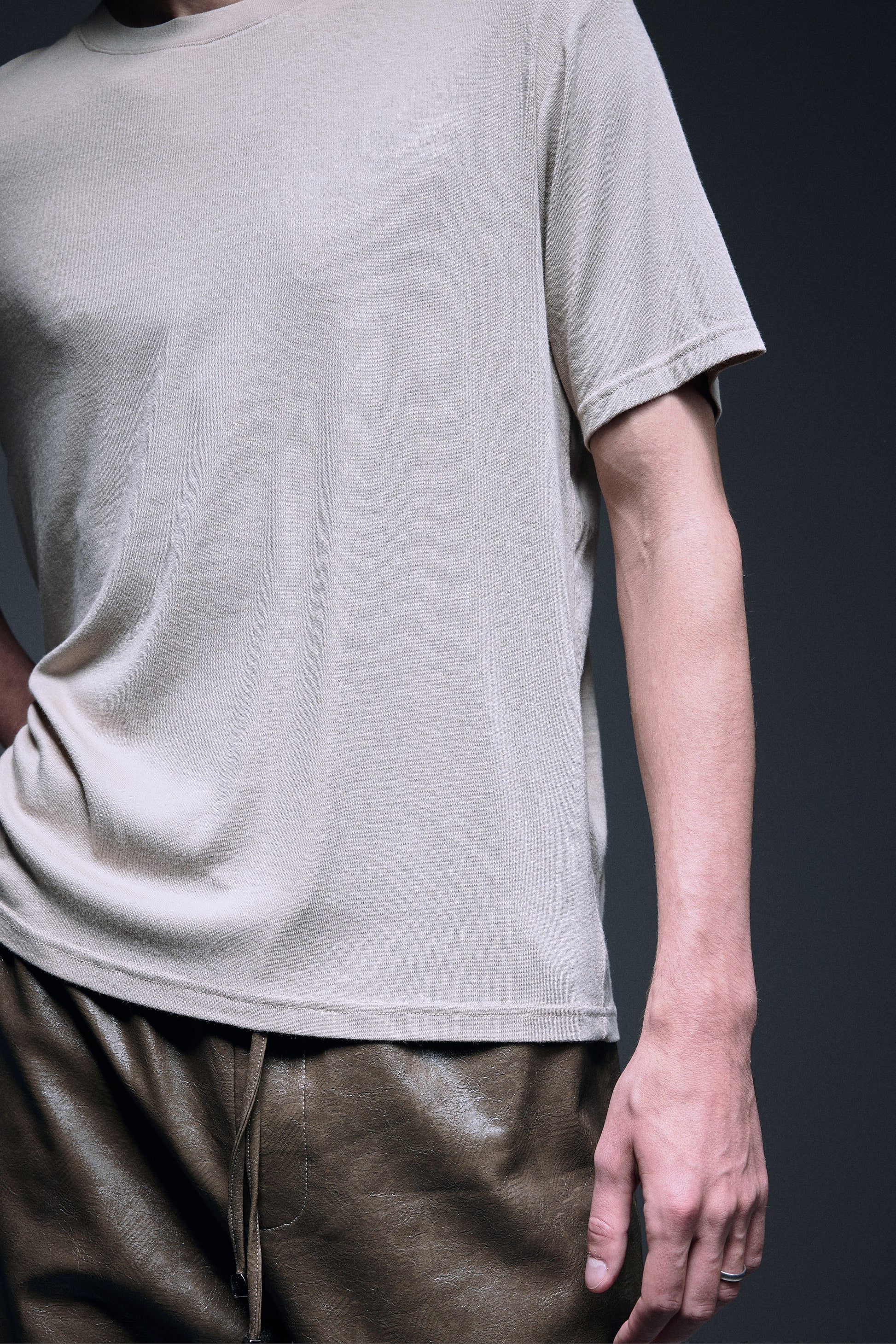 Slim fit T-shirt made with special soft stretchable material with cashmere touch, toned in a subtle beige to create the quiet luxury elegance, perfectly made to wear in a summer breeze or to match with winter jacket in a cooler weather.